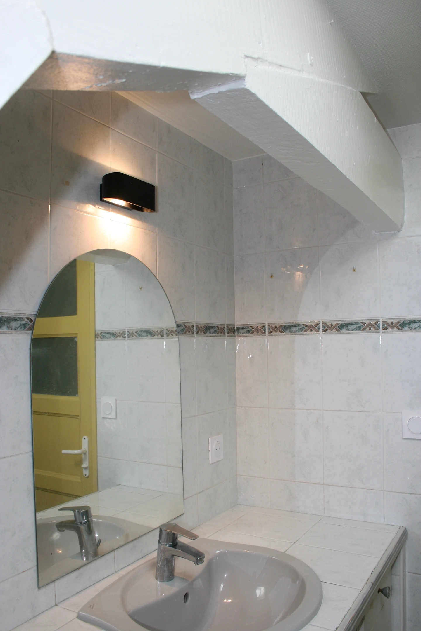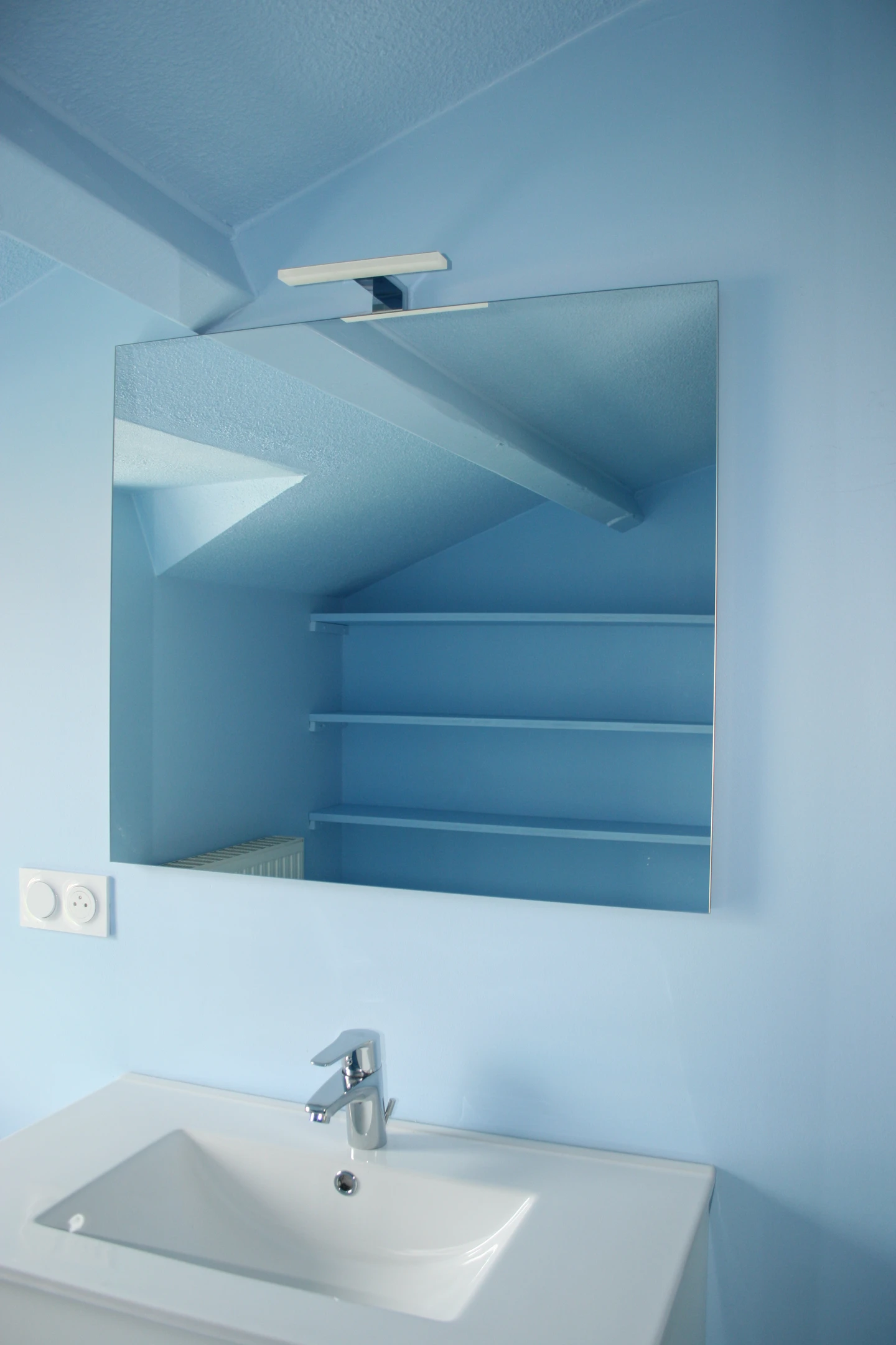 Les formes des plafonds obliques intimisent et renvoient aux verres à pied.