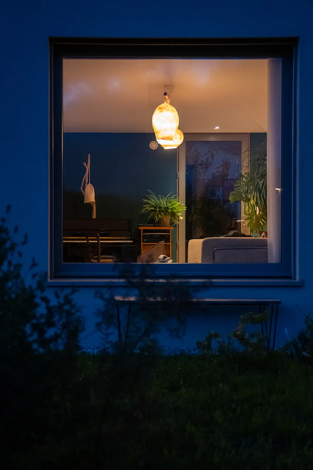 La volumétrie de la maison est adaptée à la vie d’une famille de 4 personnes, par l’ajout d’une extension côté jardin et d’une surélevation au-dessus du garage. Ces deux boites habillées de bac acier bleu marine inscrivent la maison dans une architecture plus contemporaine, en lui offrant des espaces ouverts en éventail sur la terrasse et le jardin.